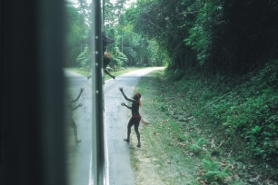 desde los vehículos para atraer a los jarawas.