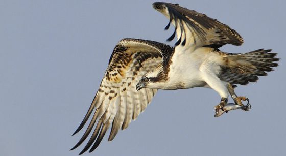 El águila pescadora es muy fácil de identificar por su color blanco y
